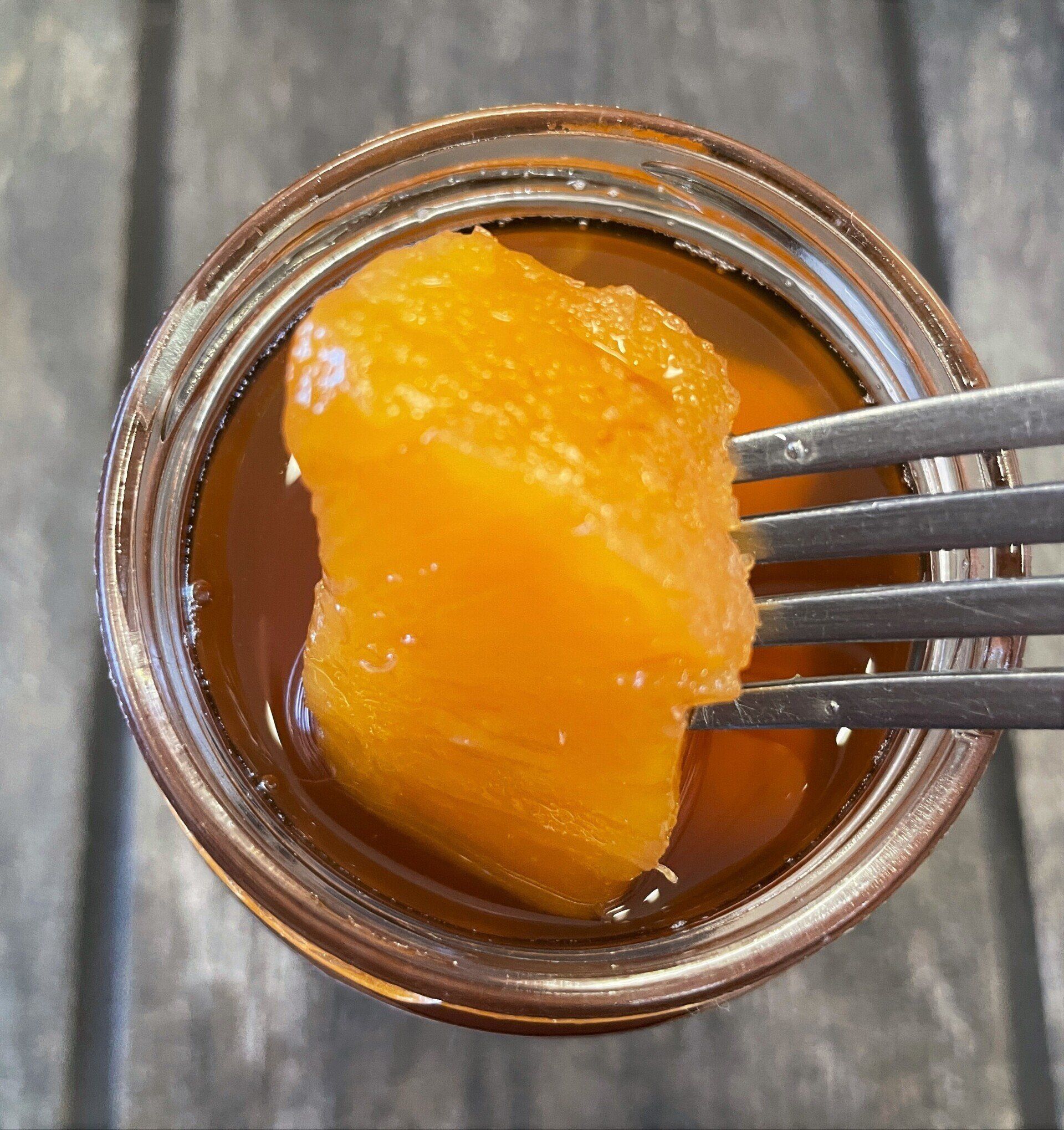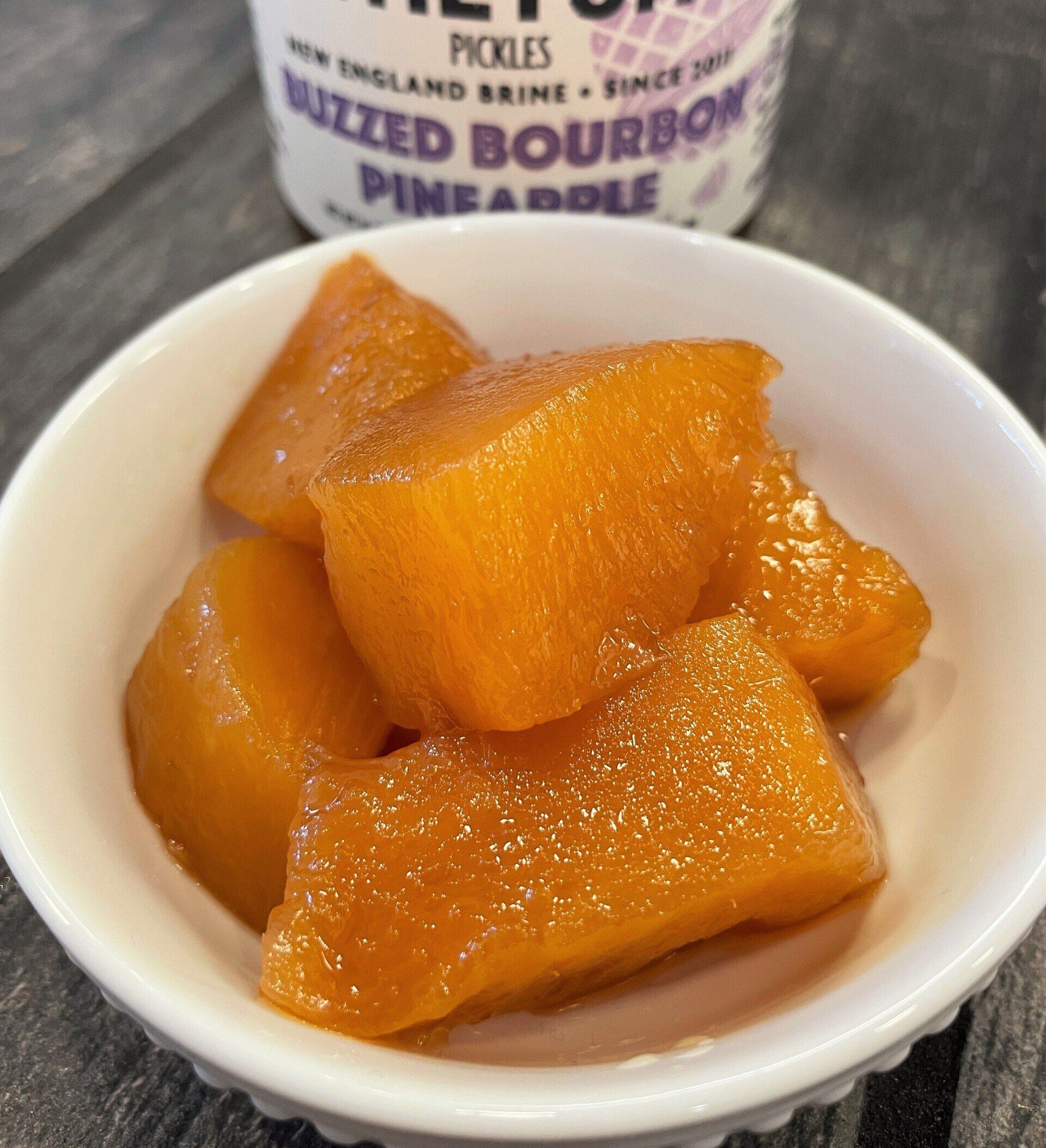 Stretch’s mad scientists are at it again with another out of this world flavor! Fresh pineapples immersed in cider vinegar and doused with real bourbon is just the commencement. The coupling of cinnamon, allspice, and cloves creates an eruption of sweet’n tangy flavor. Once melded together these constituents form a mouth watering convergence of taste worthy of its name. *Seasonal item*