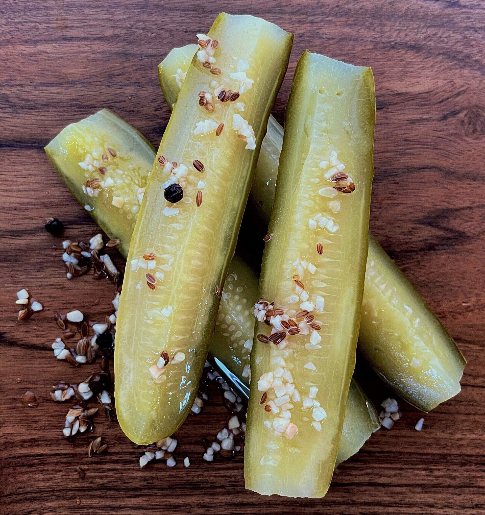 Pickle lovers rejoice! Our dill-licious flagship pickle has everything you want in a fresh cucumber immersed in vinegar; infused with tantalizing flavors leaving your mouth and taste buds begging for more! The acrid taste of dill seed melded together with pungent garlic and counterpoised with a tad of black peppercorn creates an eruption of flavor not to be reckoned with!